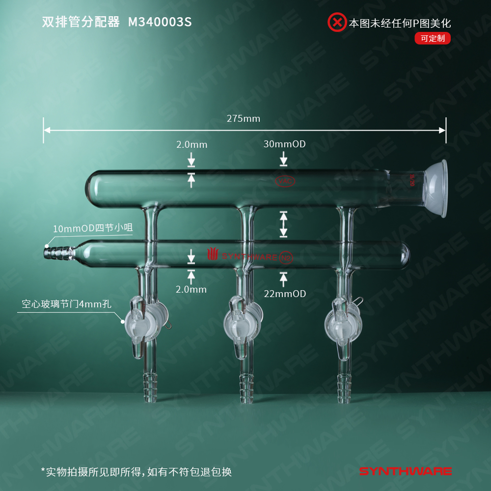 双排管真空气体分配器,空心玻璃节门,3,300mm,4小咀 M411003