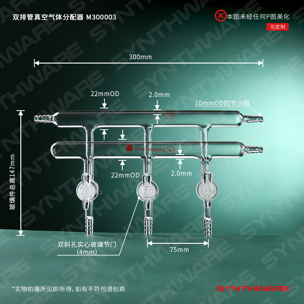 双排管真空气体分配器,实心玻璃节门,3,300mm,4小咀 M250003