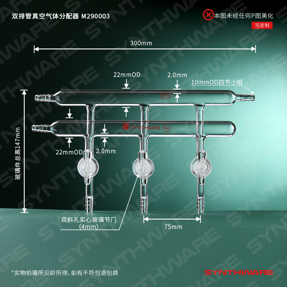 双排管真空气体分配器,实心玻璃节门,3,300mm,4小咀 M250003