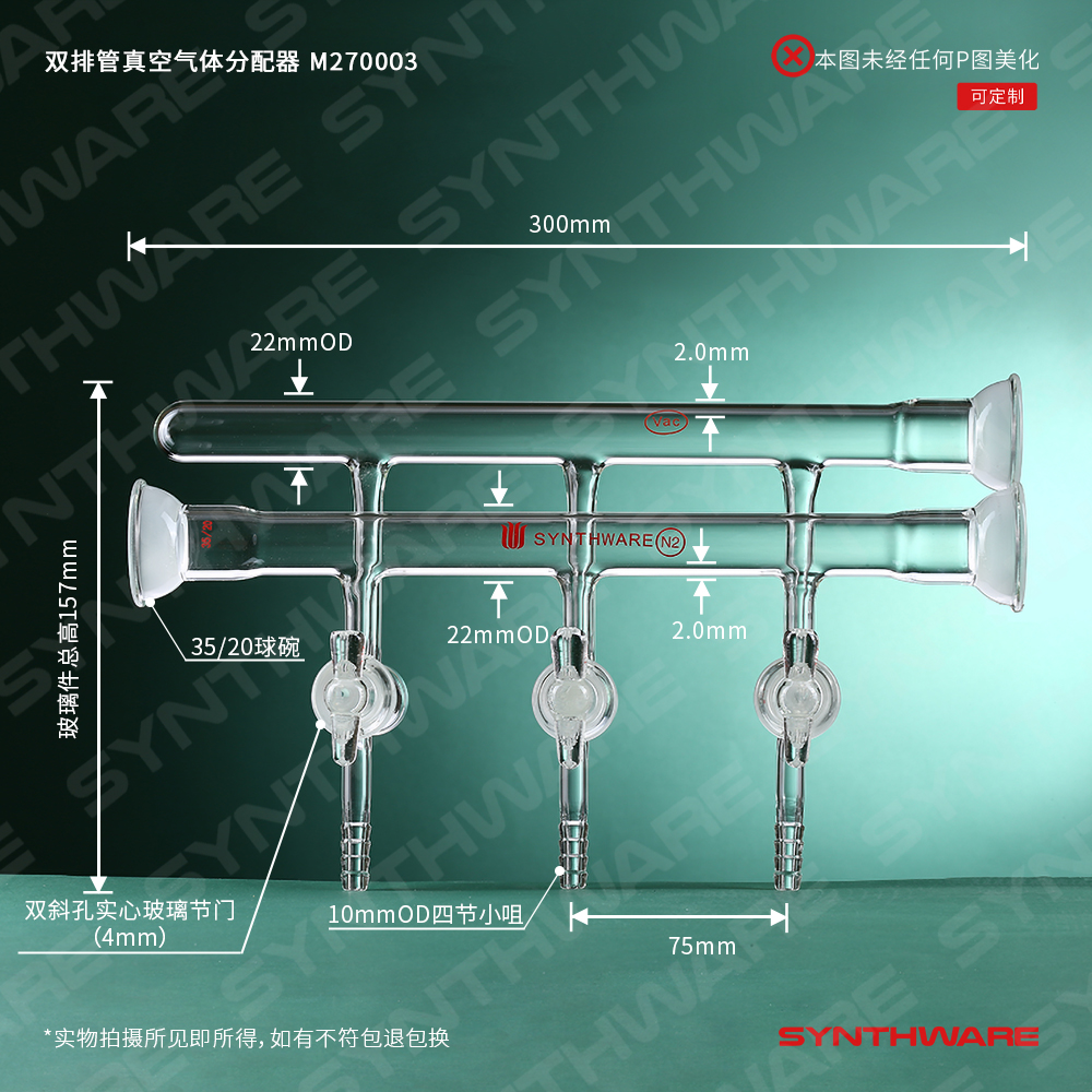 双排管真空气体分配器,实心玻璃节门,3,300mm,3球碗,左右前右后 M270003S