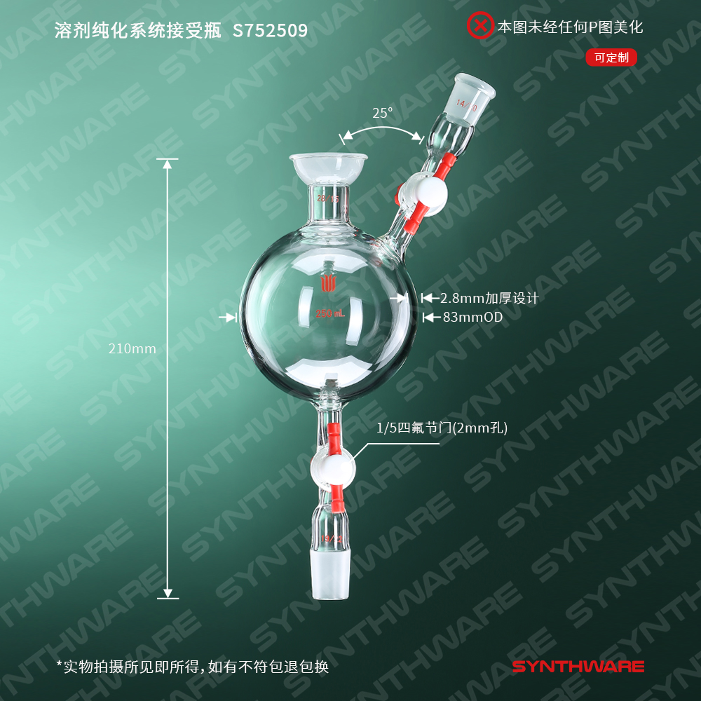 溶剂纯化系统接受瓶,容量:250ml,上28/15,下19/22,侧14/20 S752509