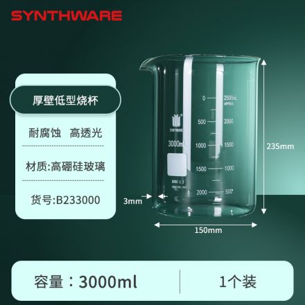 低型烧杯,厚壁,容量:3000ml B233000
