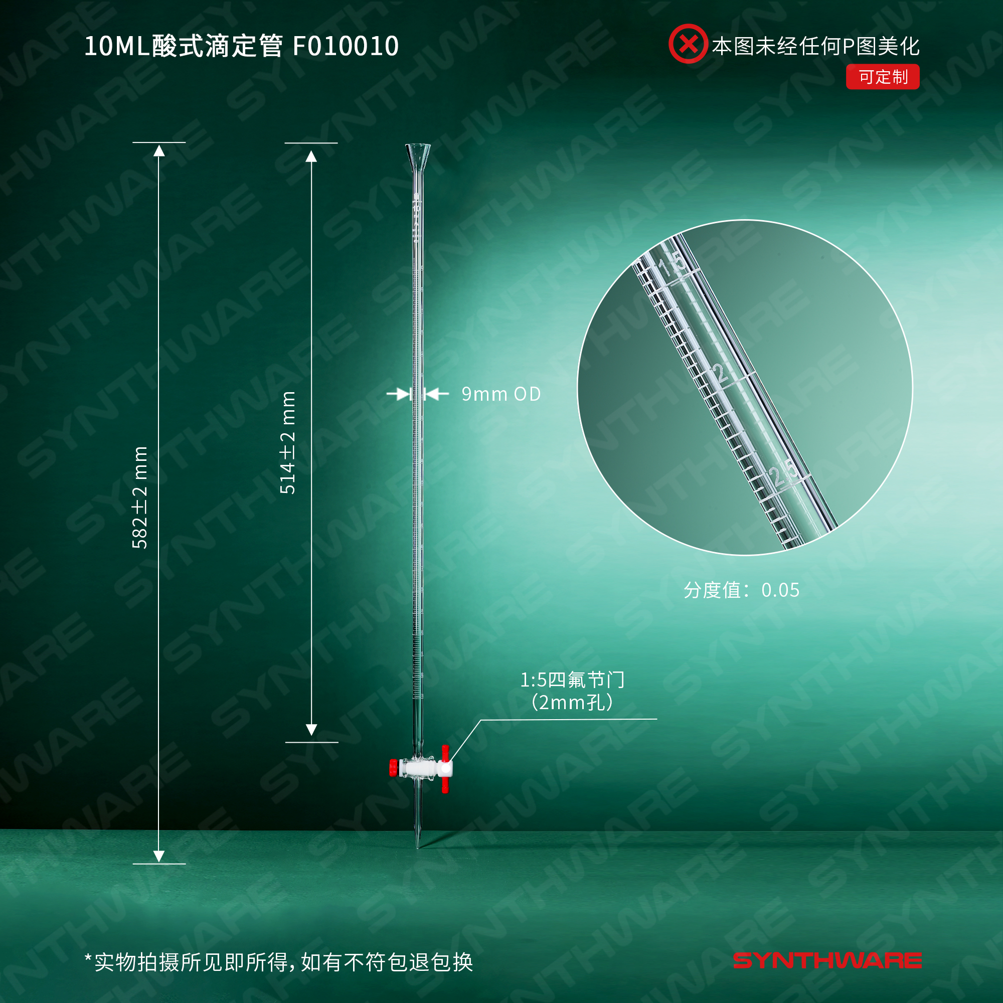 10ML酸式滴定管 透明玻璃(2MM四氟节门),(酸碱通用) F010010
