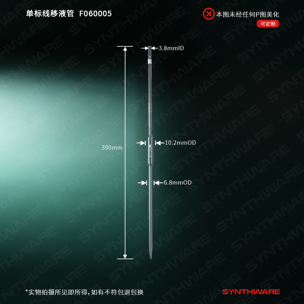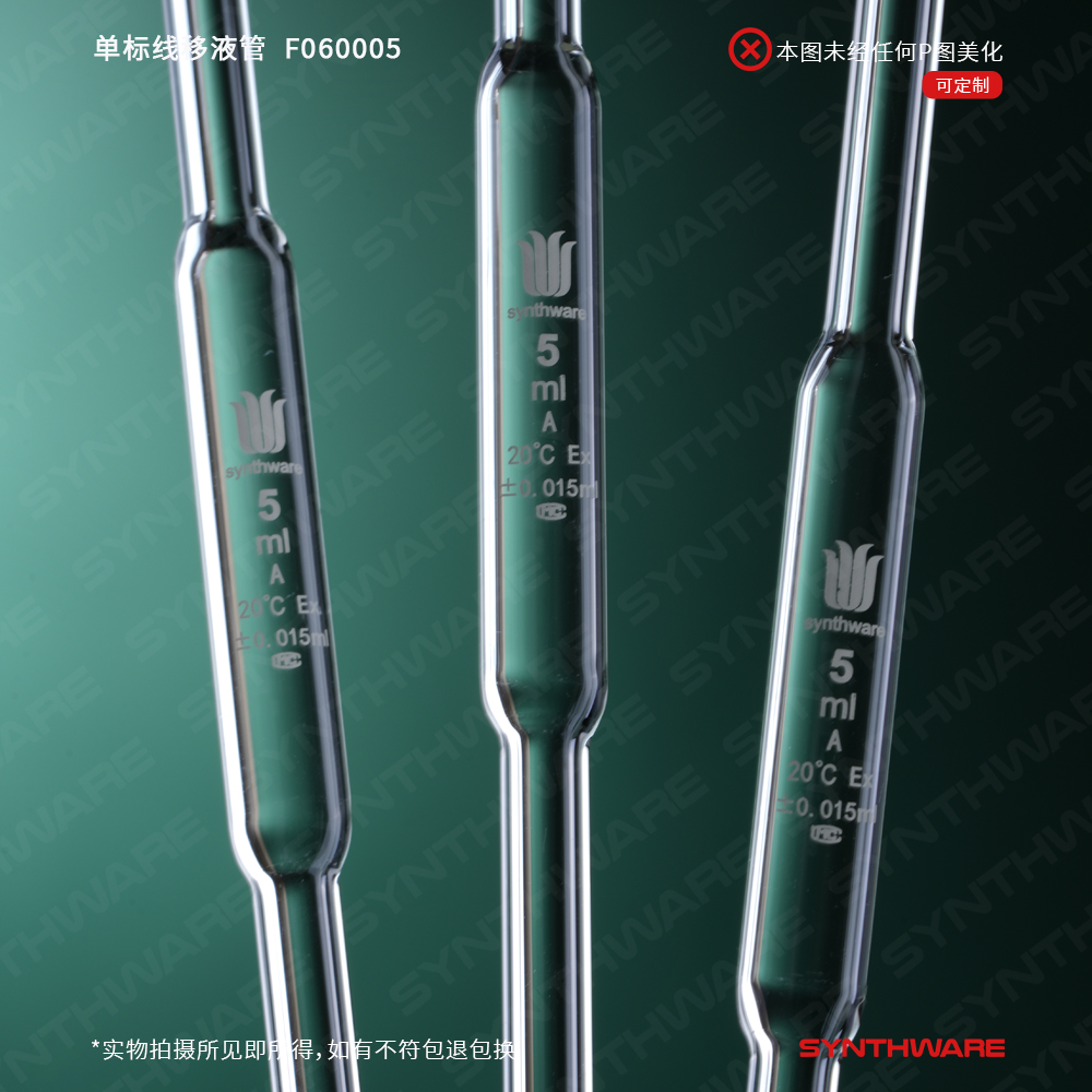 5ml 单标线移液管,高硼硅透明玻璃,1支/盒 F060005-1