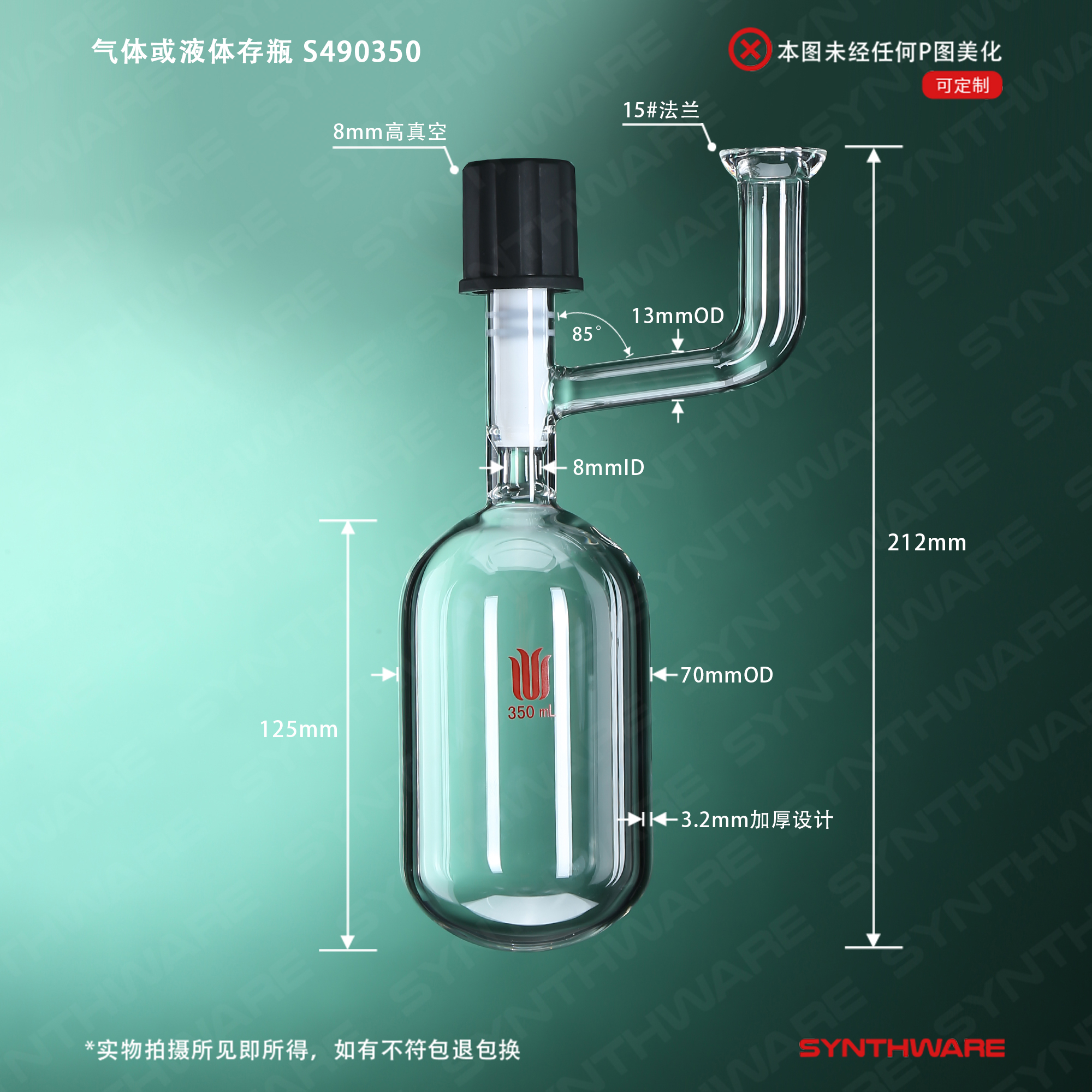 溶剂存储瓶 > 直管型溶剂存储瓶 > 带砝兰口直管型溶剂存储瓶 > SYNTHWARE > 气体或液体存储装置,带砝兰口的溶剂存储瓶#15 O型珐琅盘,350ml S490350