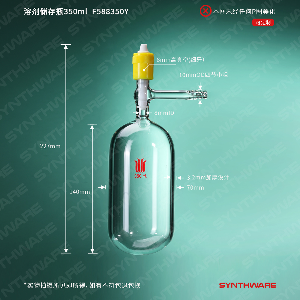 溶剂储存瓶350ml,新型0-8mm高真空,管外径×总高:70×140mm F588350Y