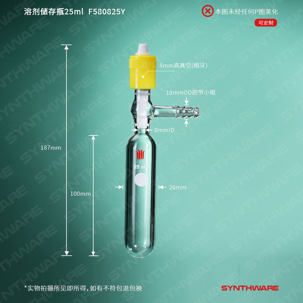 溶剂储存瓶25ml,新型0-8mm高真空,管外径×总高:26×100mm F580825Y