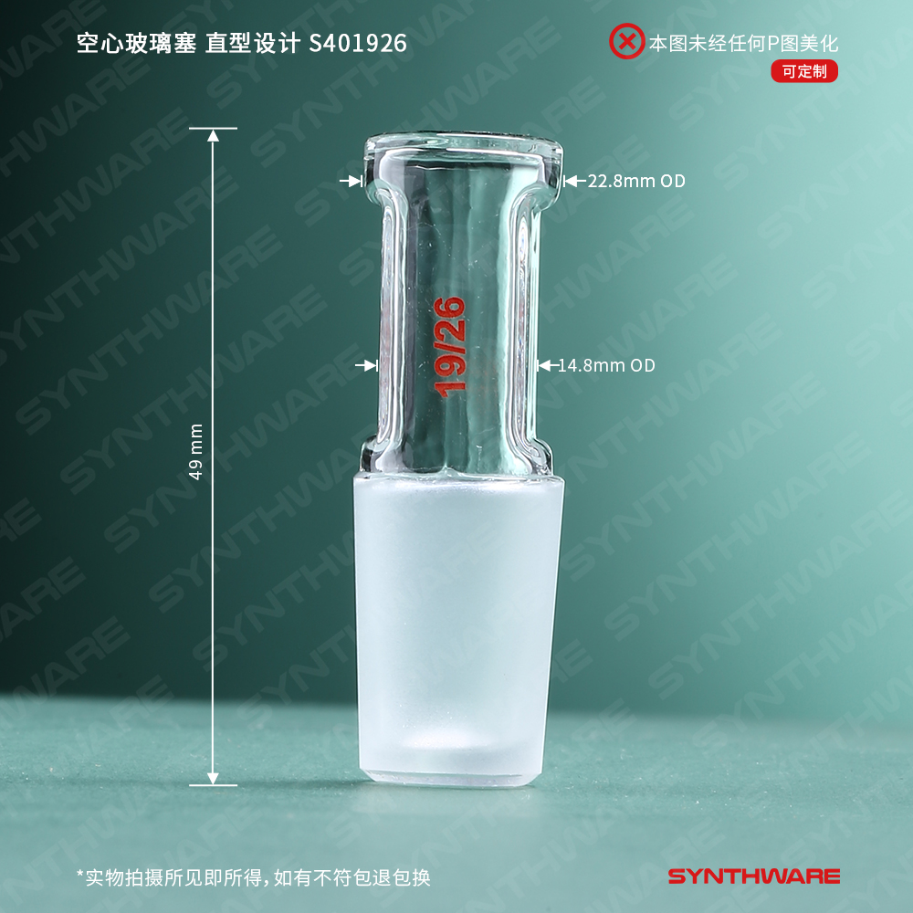 空心玻璃塞,直型设计,磨口:19/26,可用于磨口夹CS001922配套 S401926