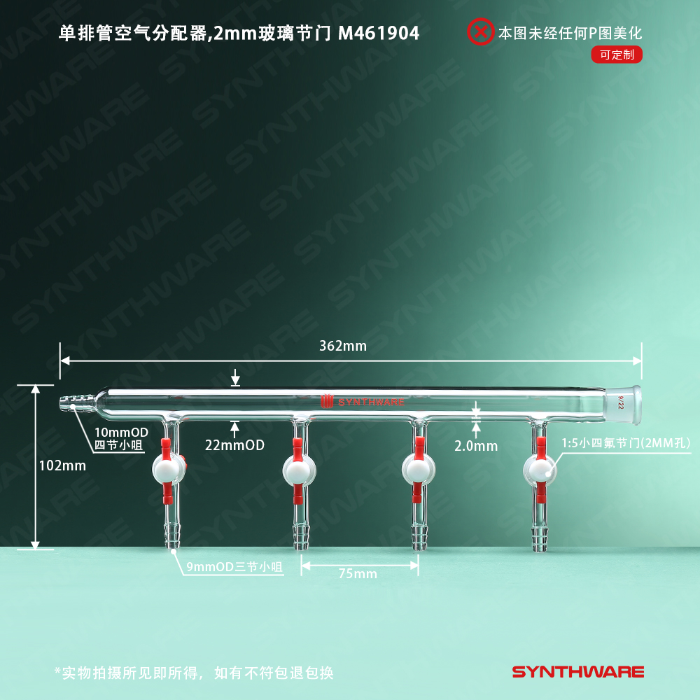 单排管空气分配器,2mm四氟节门,4组,横梁左侧小咀右侧19/22口 M461904