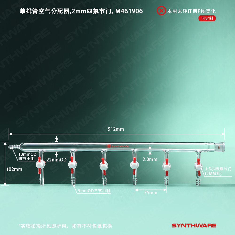 单排管空气分配器,2mm四氟节门,4组,横梁左侧小咀右侧19/22口 M461904