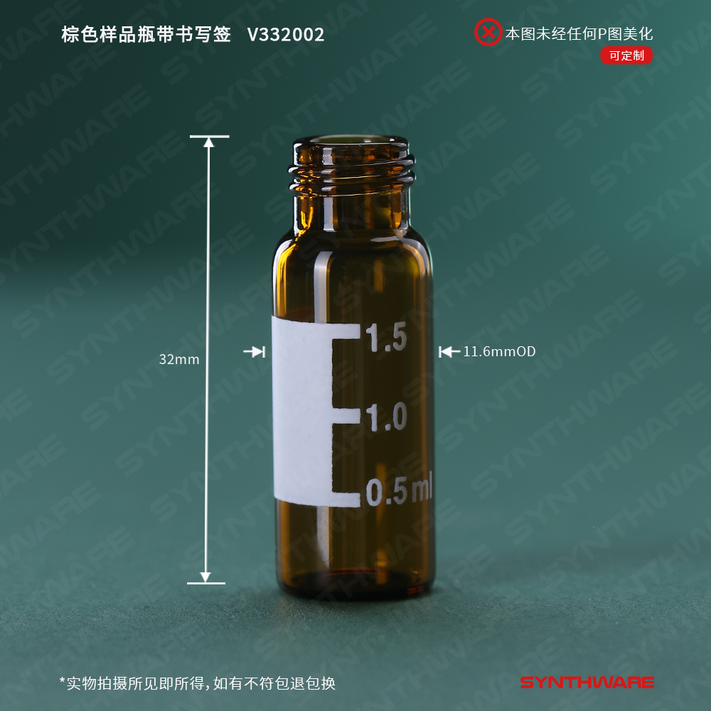 9-425螺纹口棕色玻璃带书写标瓶,2ml,11.6*32mm,样品瓶+具孔盖+PTFE预切口垫片,10个/包 V600902-10