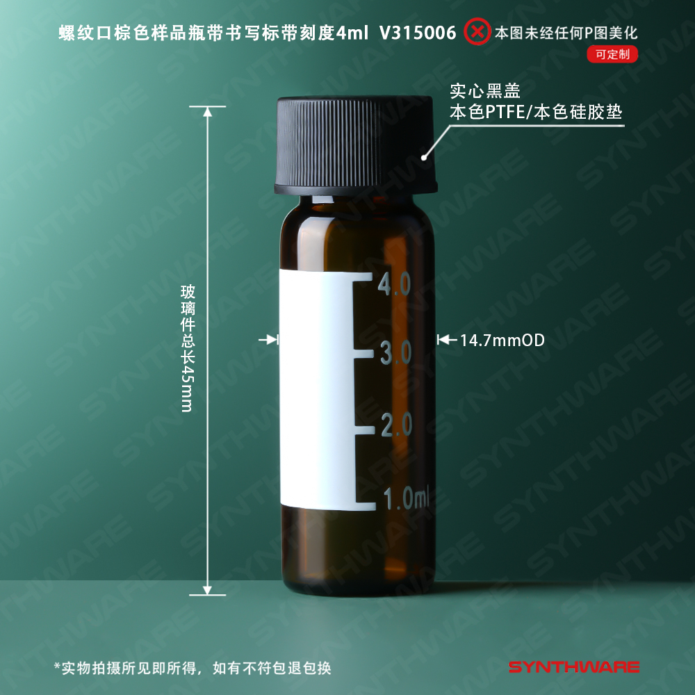 螺纹口棕色样品瓶4ml(14.7*45mm实心黑盖本色PTFE/本色硅胶垫)100/套 V315006