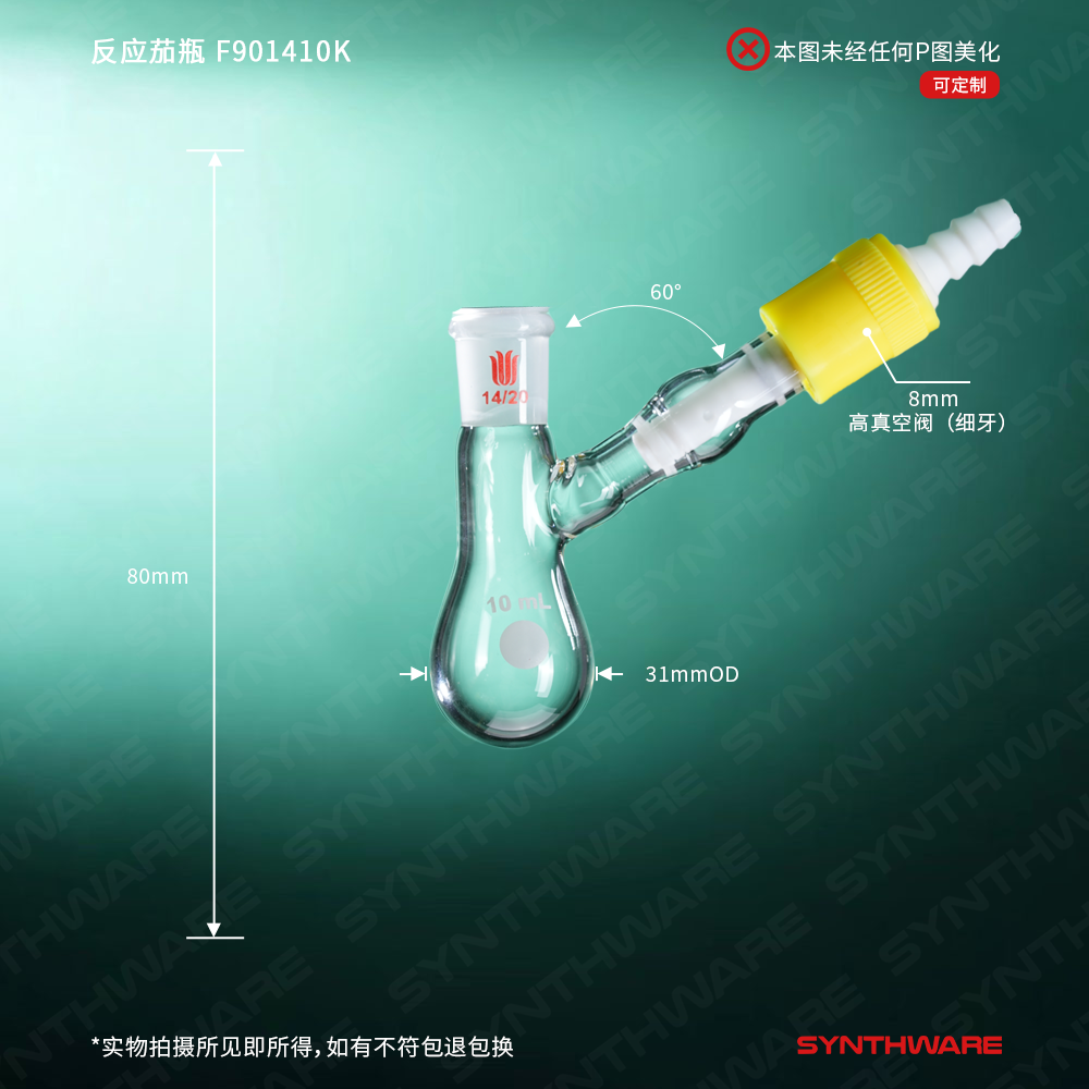 反应茄瓶,磨口:14/20,10ml,带通气孔高真空阀 F901410K