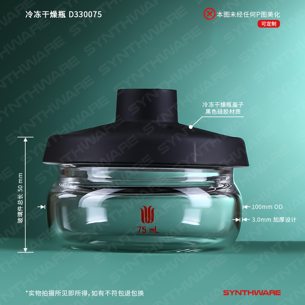 # 温馨提示:由于市面上冷冻干燥瓶盖子尺寸多样,所以D33系列冷冻干燥瓶确保能与标配瓶盖完美匹配,不能确保和其它品牌的盖子兼容。如果要单独订购冻干瓶,请和客服沟通确认尺寸,即便我们常规的冻干瓶不能与您的盖子匹配,我们提供定制服务,能够根据您提供的盖子尺寸,生产适配的冻干瓶,满足您的个性化需求。