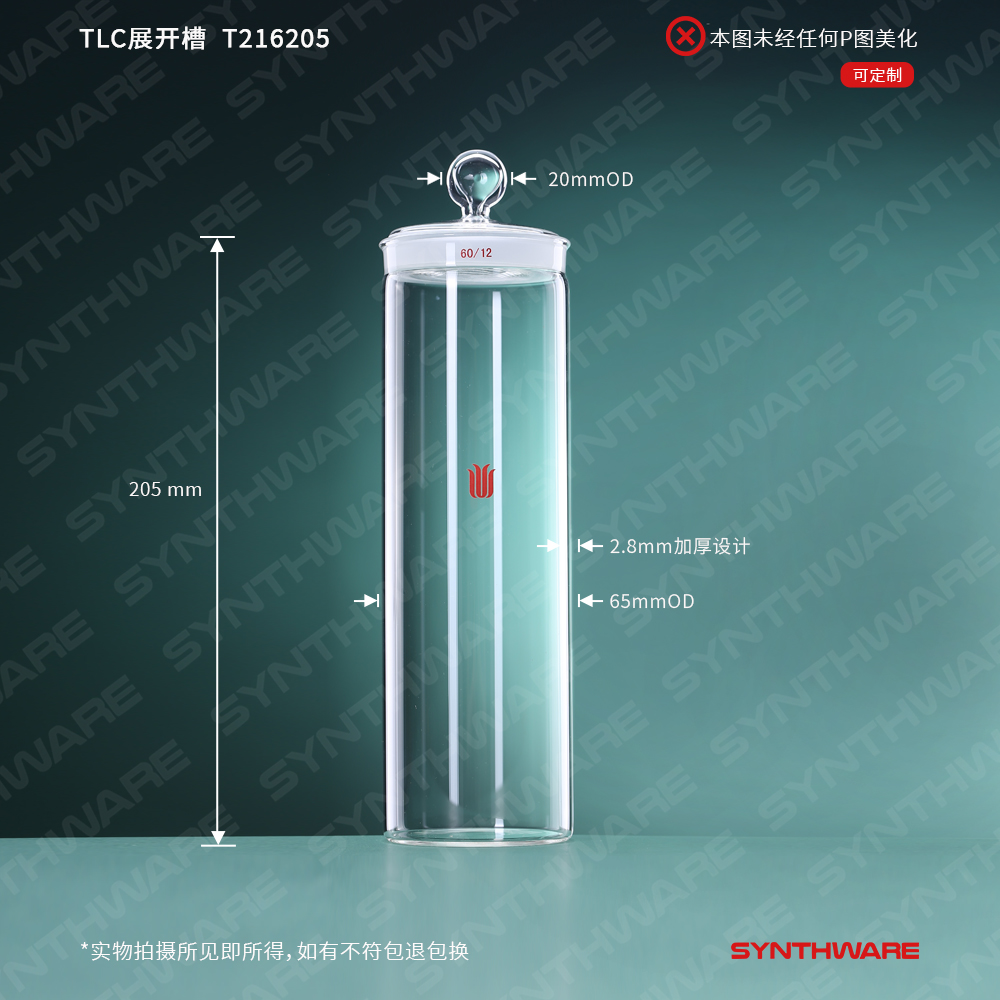 # 也可用作TLC展开槽。磨口细腻,保证气密性,可有效减少流动相展开剂的挥发损耗。底部厚实光滑,便于稳定放置薄层层析硅胶板。