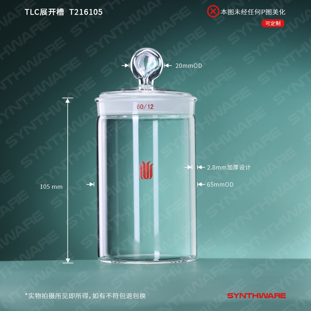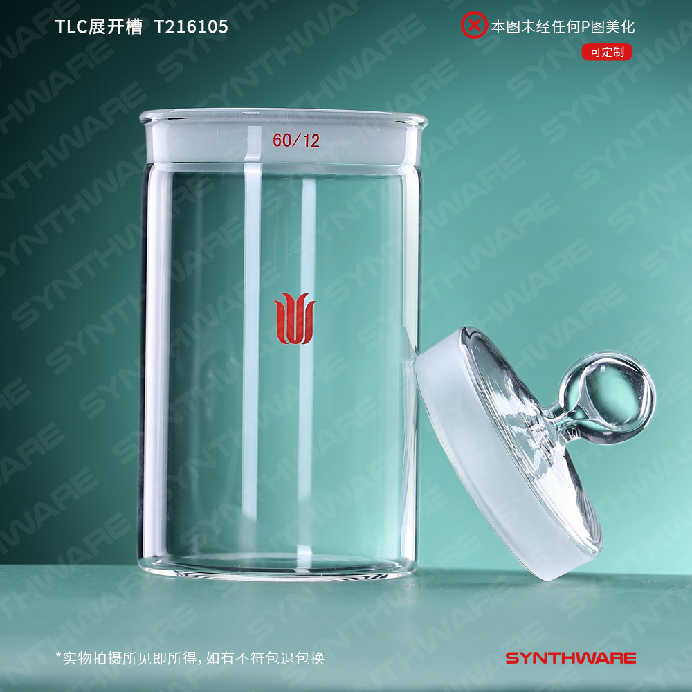 # 也可用作TLC展开槽。磨口细腻,保证气密性,可有效减少流动相展开剂的挥发损耗。底部厚实光滑,便于稳定放置薄层层析硅胶板。