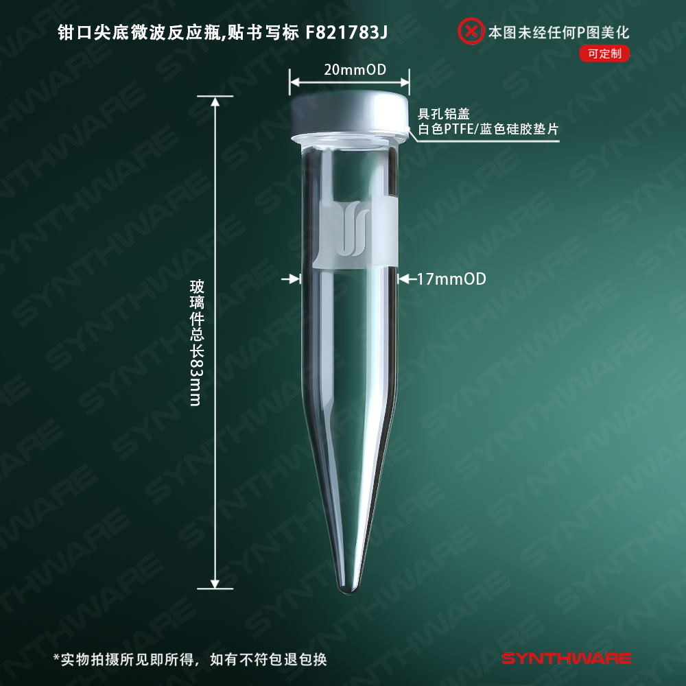 钳口尖底微波反应瓶,贴书写标 管外径17mm*高度83mm F821783J