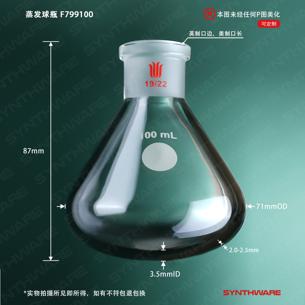# 短粗型“不倒翁”设计,既具备三角瓶可直接放置桌上的优点,又可在减压条件下使用,如:可在旋转蒸发仪上作为蒸发瓶。同时,此设计易于用药勺/刮从瓶底取出固体样品。