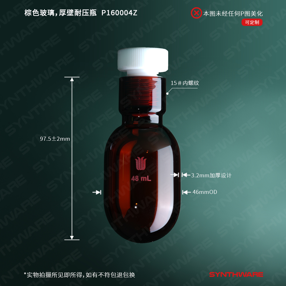 # #15内螺纹棕色厚壁耐压管,可用于对光敏感的反应,防止光敏物质发生分解。标配有四氟螺纹盖(B100015G)以及EP材质O型圈(R111EP)。