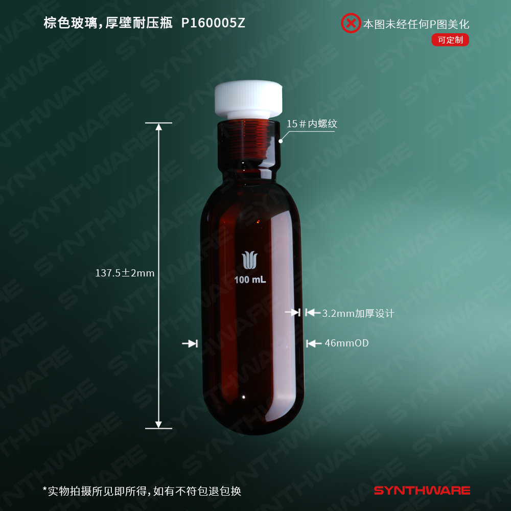 棕色玻璃,厚壁耐压瓶一套,100ml,15# P160005Z
