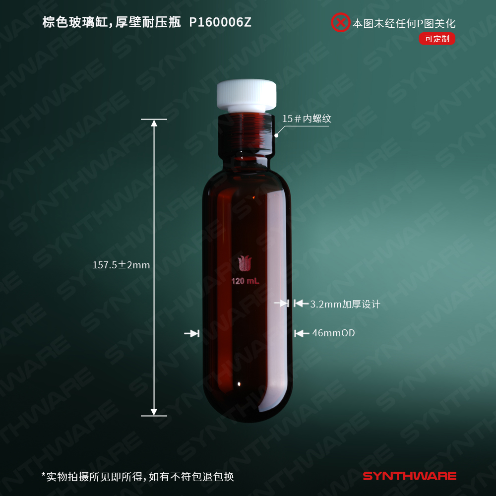 棕色玻璃缸,厚壁耐压瓶一套,120ml,15# P160006Z
