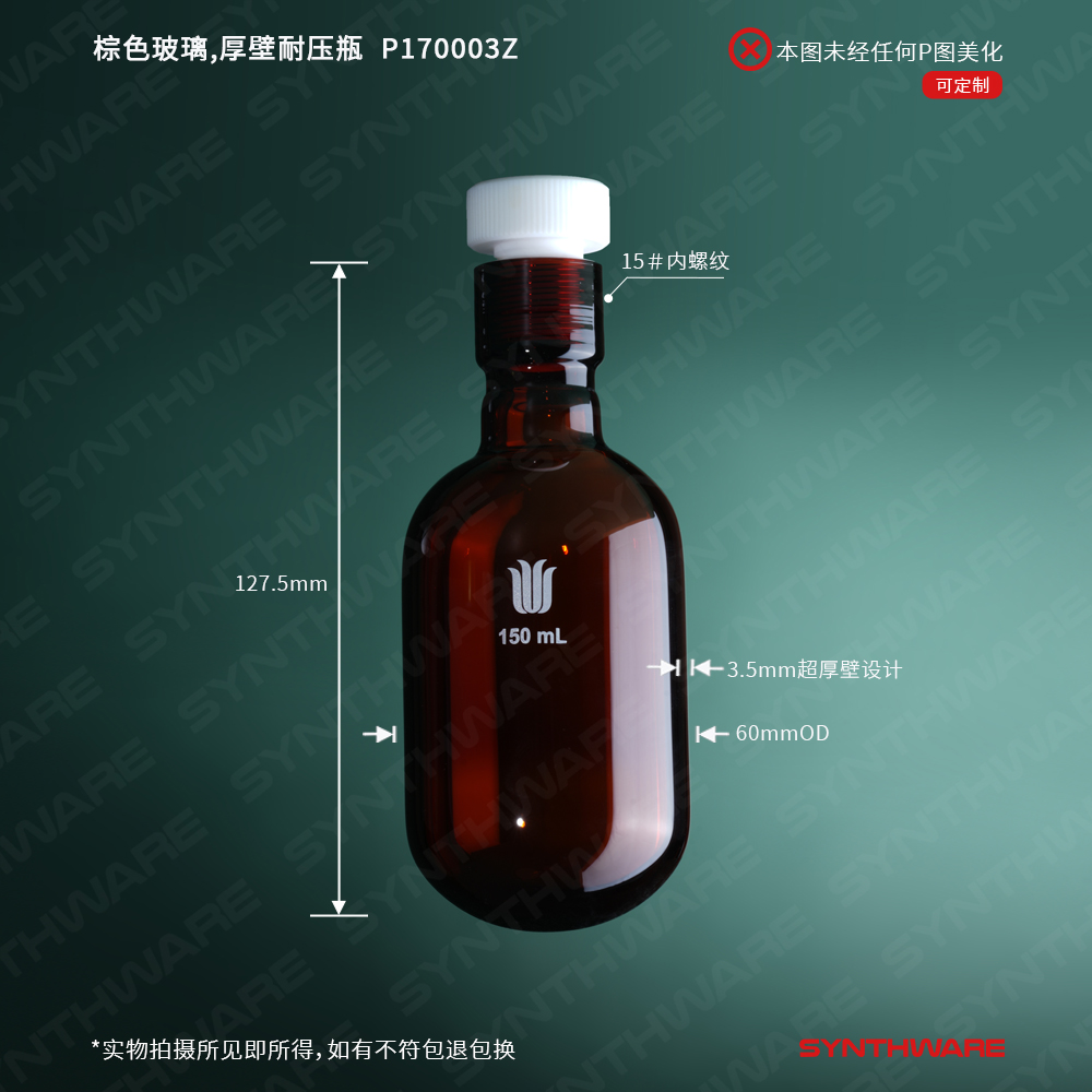 棕色玻璃,厚壁耐压瓶一套,100ml,15#,管外径×总高:46mm×110mm P170100Z