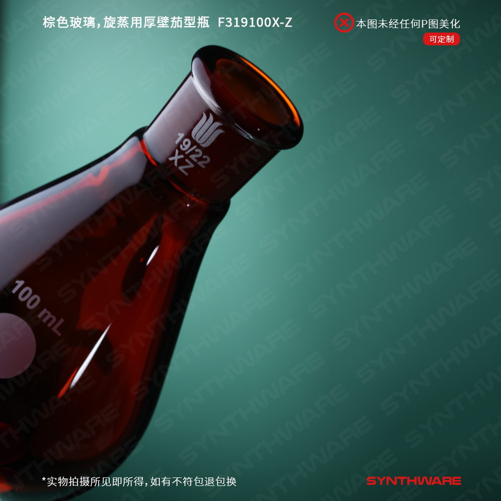 棕色玻璃,旋蒸用厚壁茄型瓶,高强度,磨口:19/22,100ml F319100X-Z
