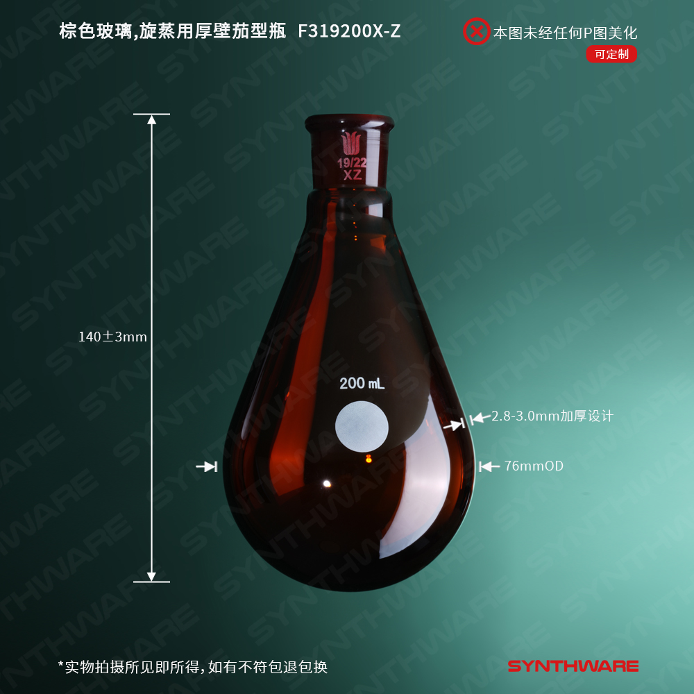 棕色玻璃,旋蒸用厚壁茄型瓶,高强度,磨口:19/22,200ml F319200X-Z