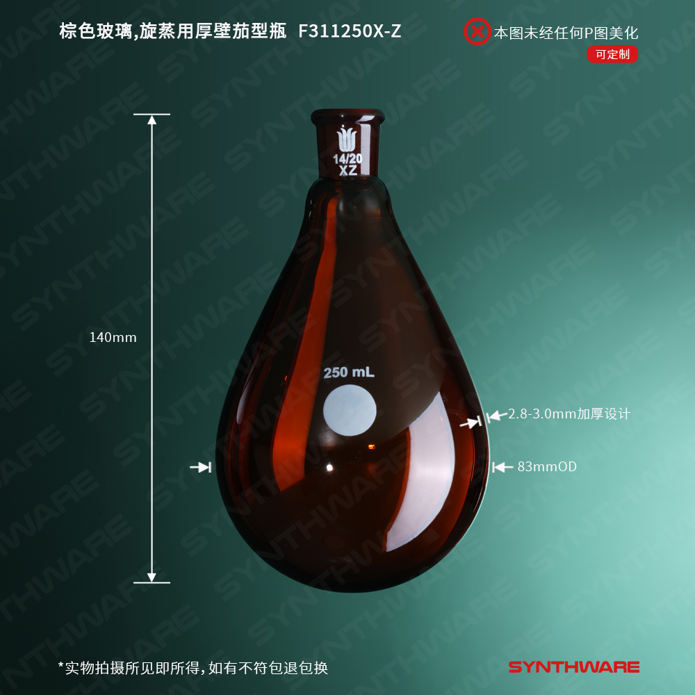 棕色玻璃,旋蒸用厚壁茄型瓶,高强度,磨口:14/20,250ml F311250X-Z