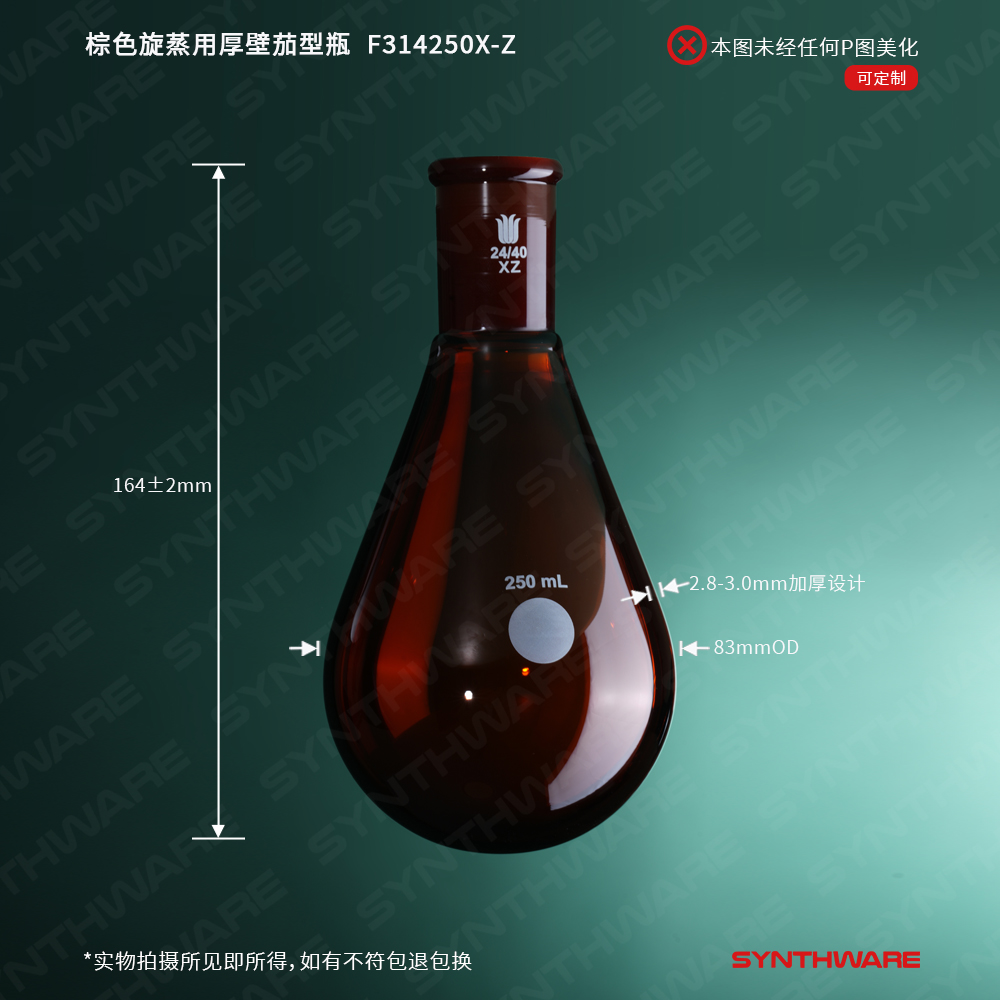 棕色旋蒸用厚壁茄型瓶,高强度,磨口:24/40,250ml F314250X-Z