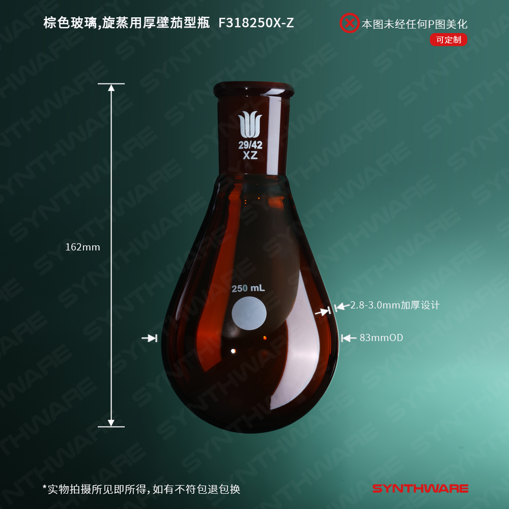 棕色玻璃,旋蒸用厚壁茄型瓶,高强度,磨口:29/42,250ml F318250X-Z