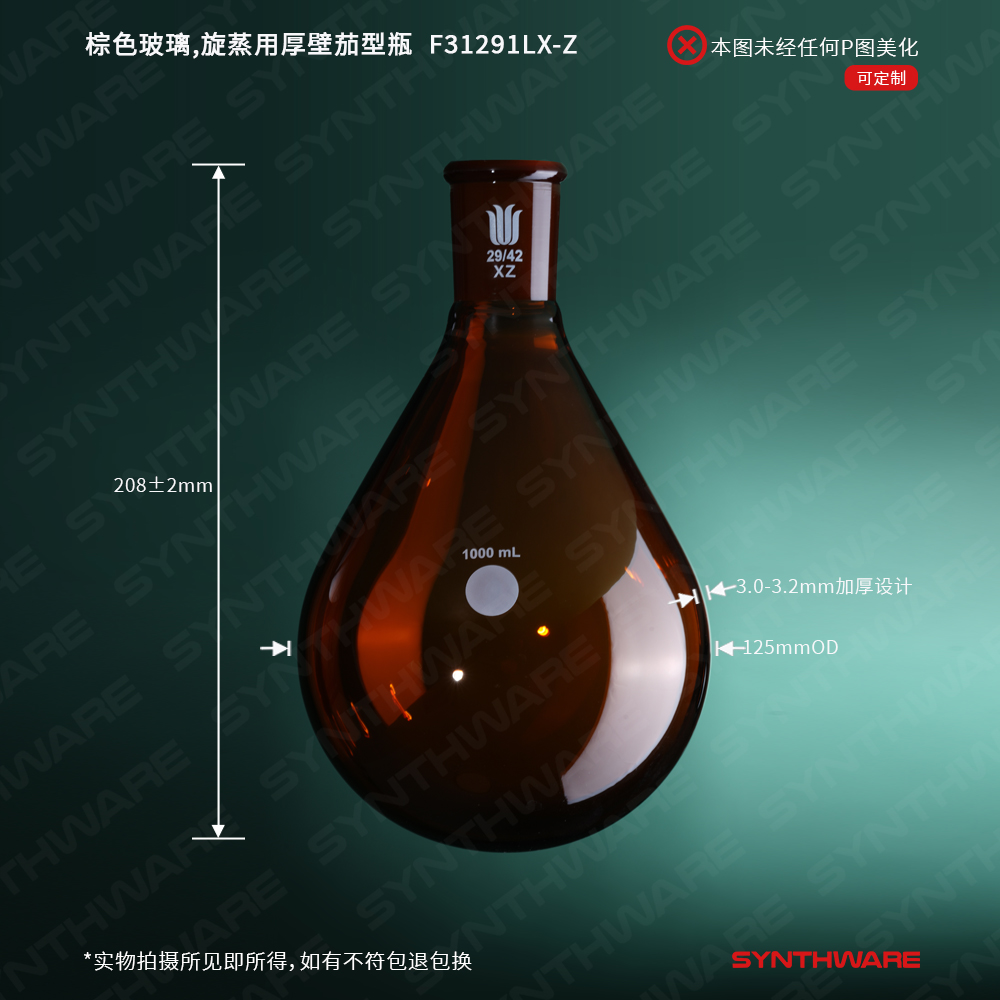 棕色玻璃,旋蒸用厚壁茄型瓶,高强度,磨口:29/42,1000ml F31291LX-Z
