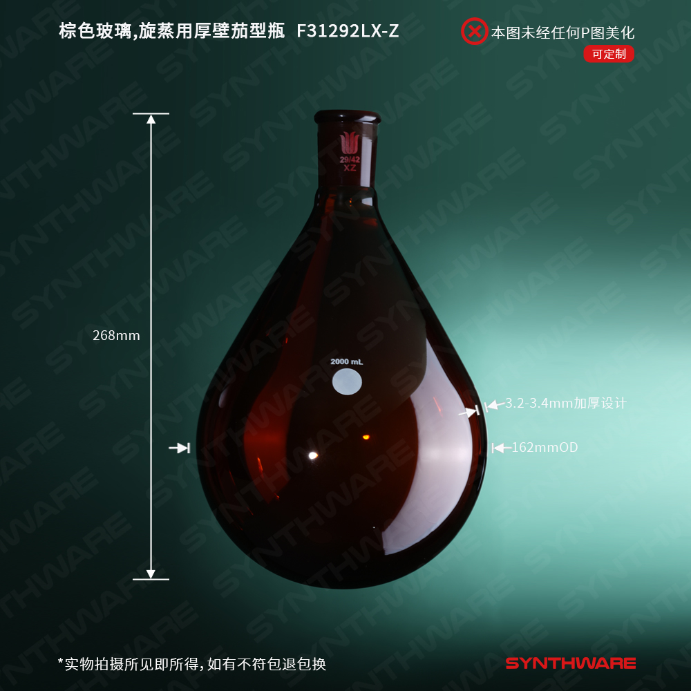 棕色玻璃,旋蒸用厚壁茄型瓶,高强度,磨口 29/42,2000ml F31292LX-Z