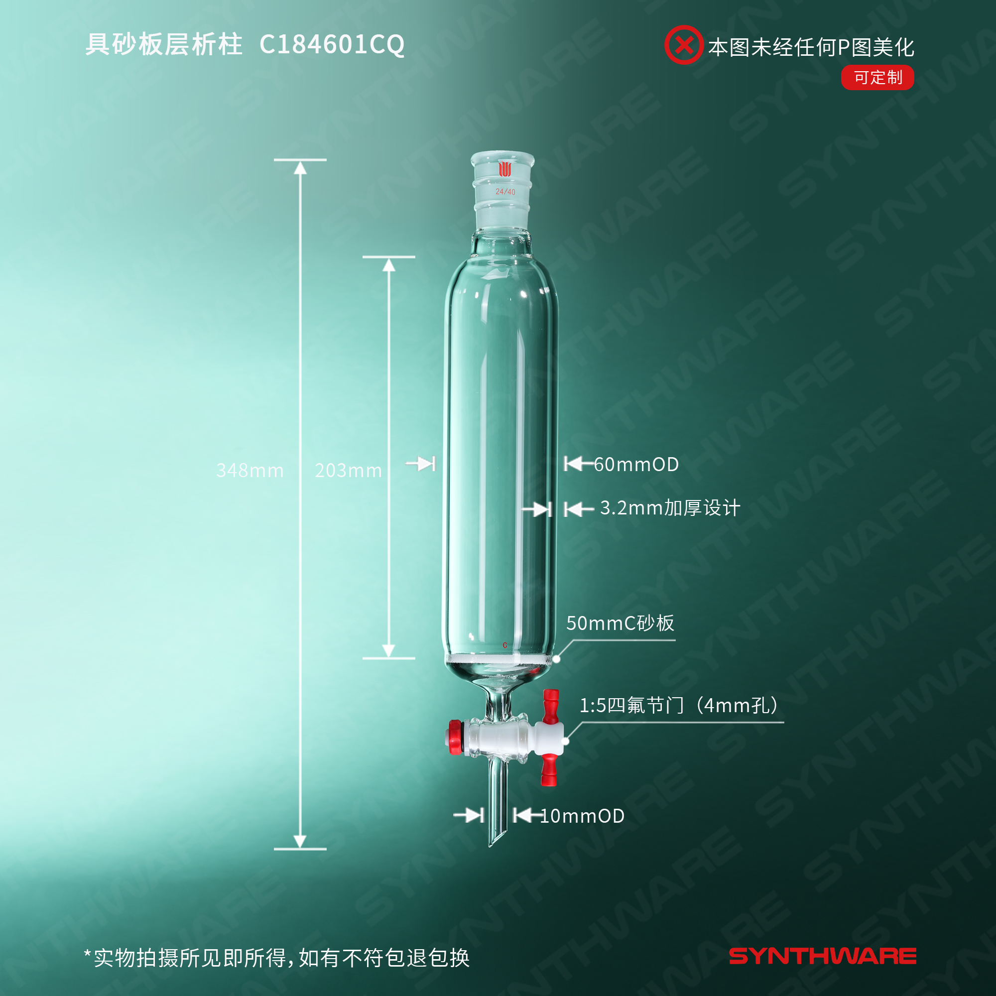 加强口,具砂板层析柱,φ60mm,有效长203mm,节门孔径:4mm,24/40 C184601CQ