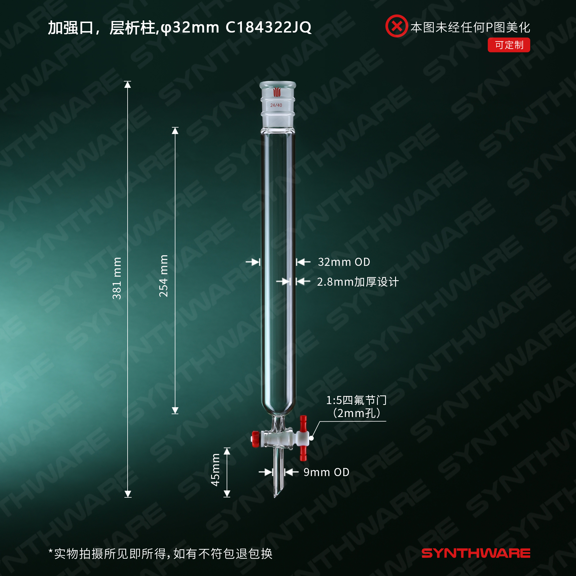 加强口,层析柱,φ32mm,有效长254mm,节门孔径:2mm,24/40 C184322JQ