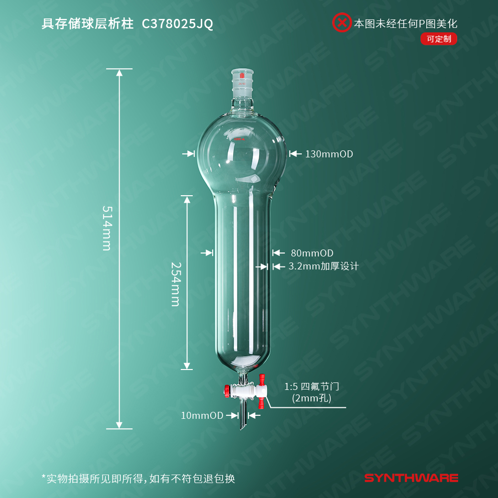 > 加强口,具存储球层析柱,24/40,φ80mm,有效长254mm,存储球:1000ml C378025JQ