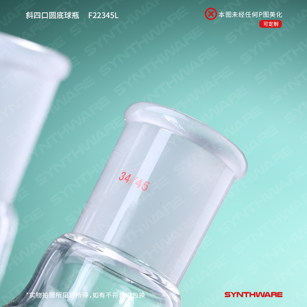斜四口圆底球瓶,中间磨口:34/45,侧磨口:24/40,2000ml F22342L