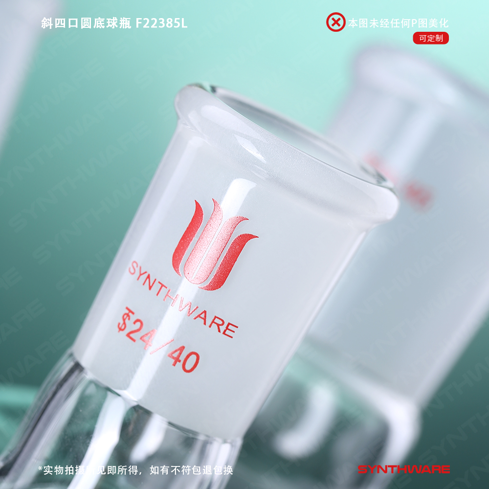 侧口可根据需求连接其他功能性接头或装置如:通气接头,冷凝器,加料漏斗等。不建议连接温度计或温度计套管类产品,如果需要连接温度计类产品请选购F21X小角度四口瓶系列。