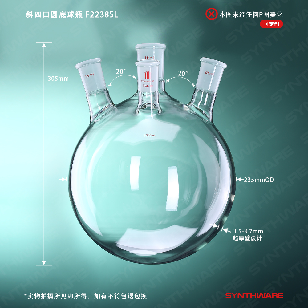 斜四口圆底球瓶,中间磨口:34/45,侧口和前口:24/40,5000ml F22345L