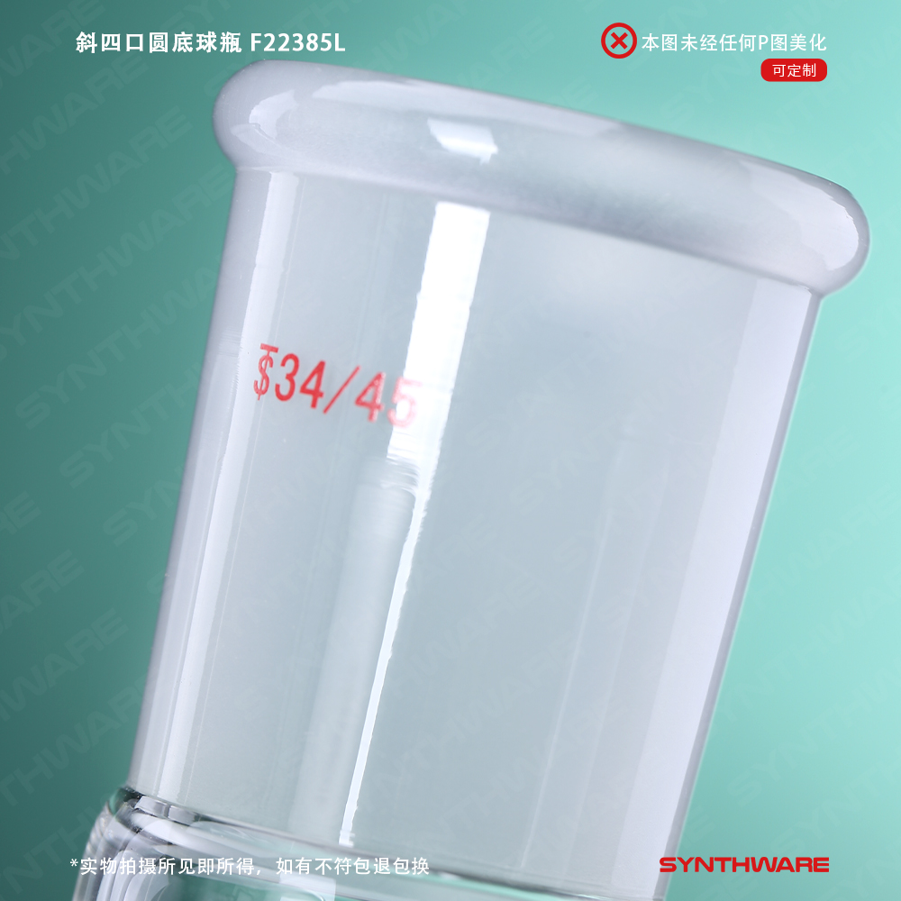 斜四口圆底球瓶,中间磨口:34/45,侧磨口:24/40,2000ml F22342L