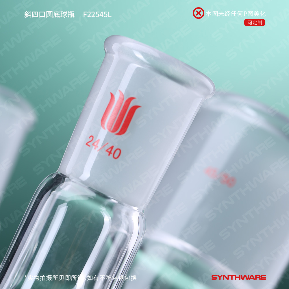 侧口可根据需求连接其他功能性接头或装置如:通气接头,冷凝器,加料漏斗等。不建议连接温度计或温度计套管类产品,如果需要连接温度计类产品请选购F21X小角度四口瓶系列。
