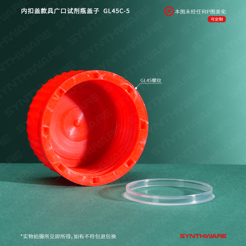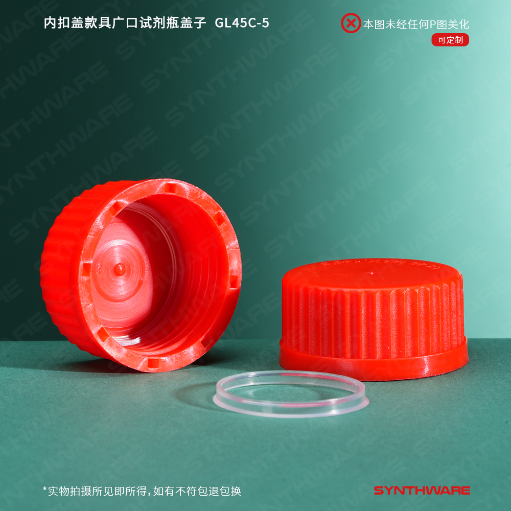 内扣盖款具广口试剂瓶盖子,PP材质,红色螺纹盖 含密封圈,5个/包 GL45C-5