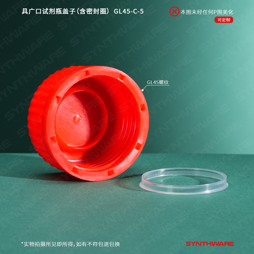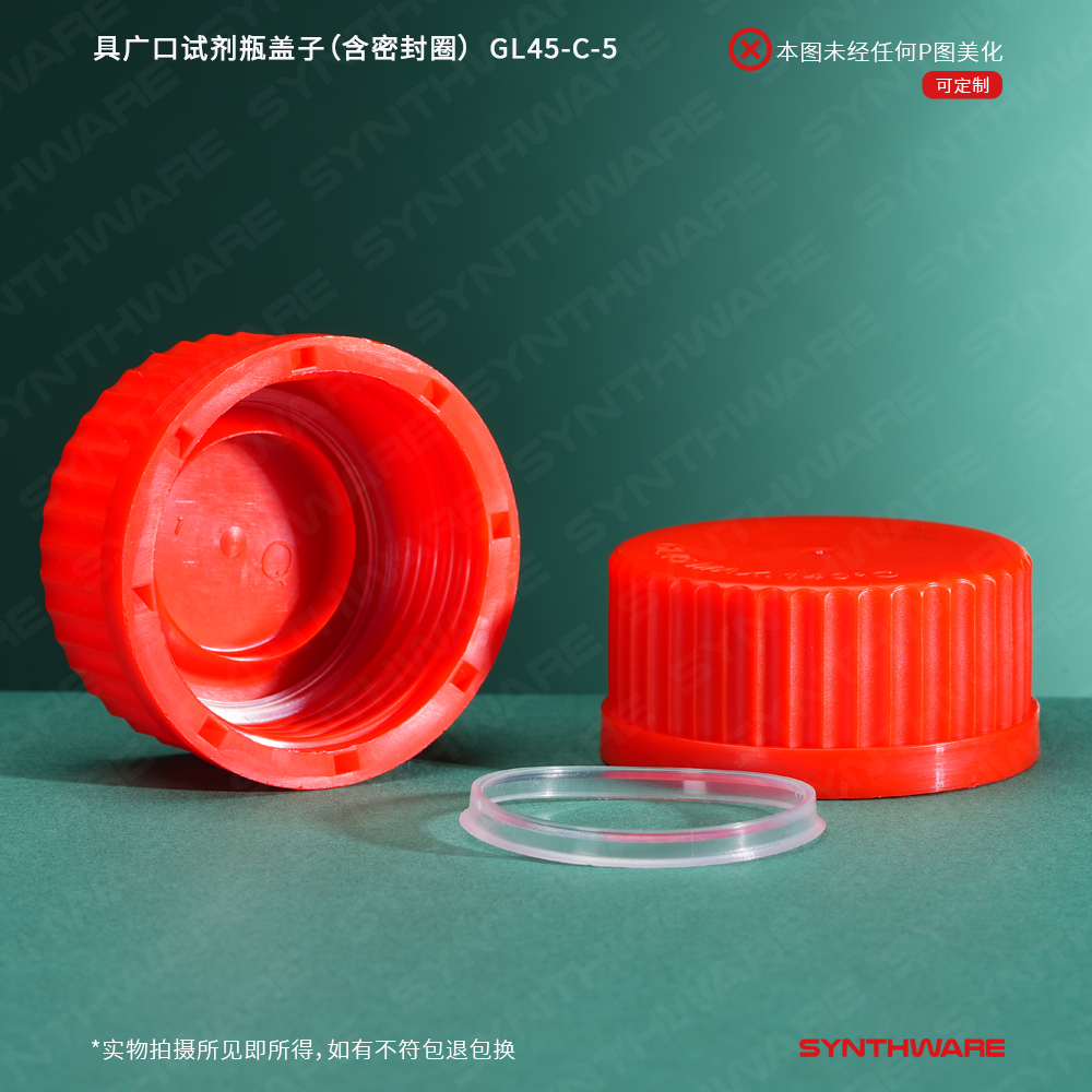 内扣盖款具广口试剂瓶盖子,PP材质,红色螺纹盖 含密封圈,5个/包 GL45C-5