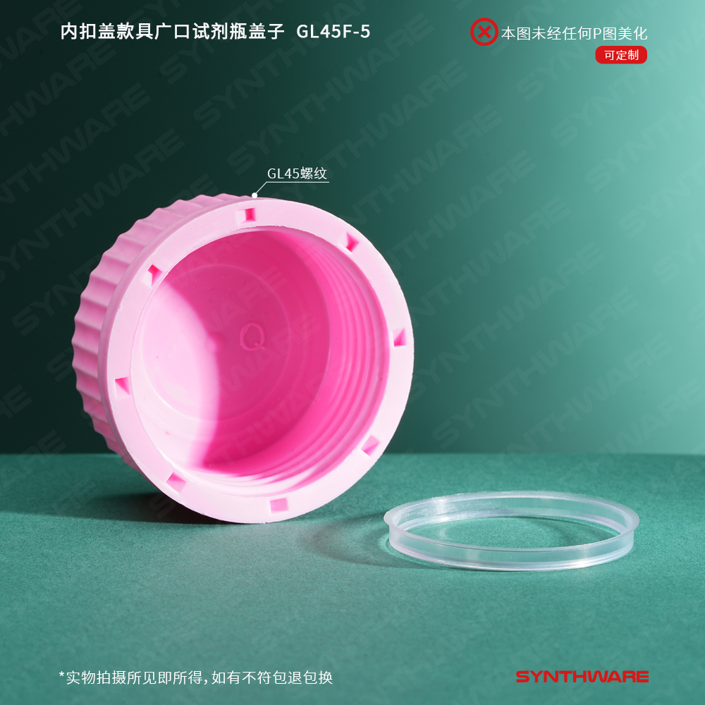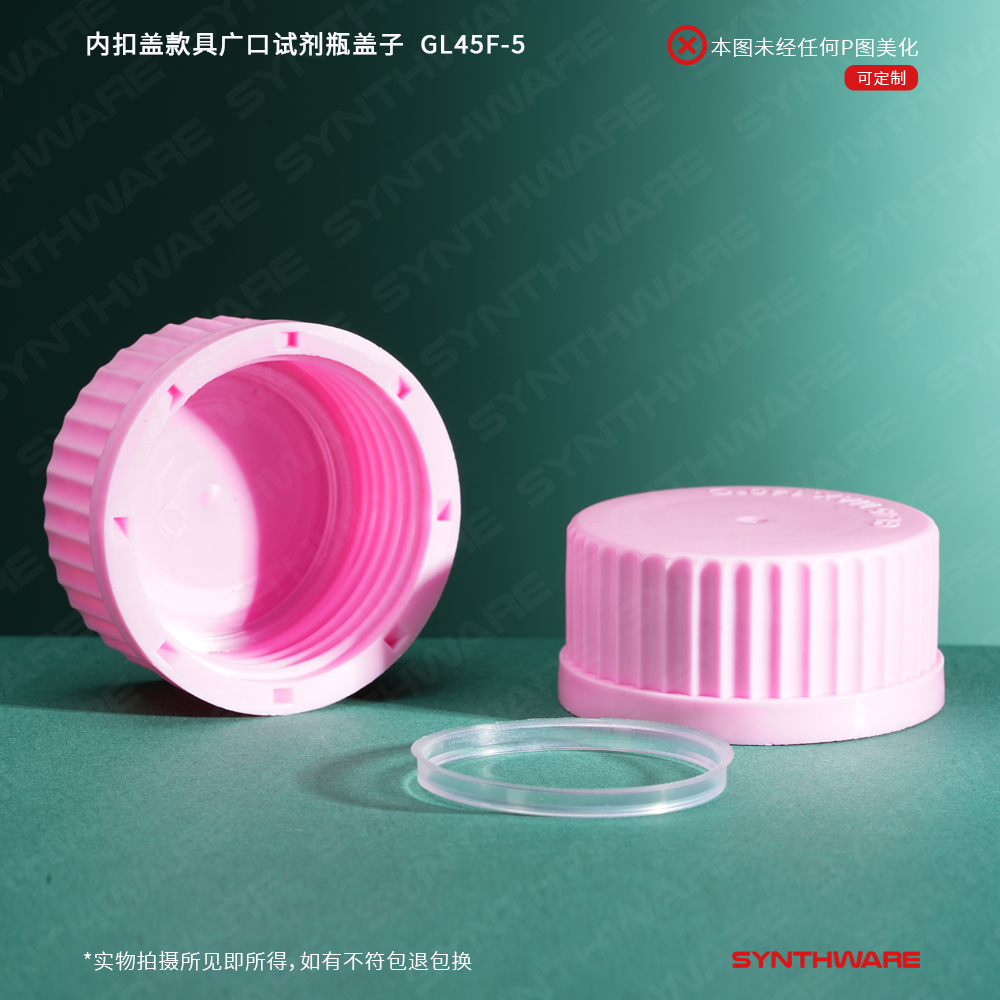 内扣盖款具广口试剂瓶盖子,PP材质,粉色螺纹盖 含密封圈,5个/包 GL45F-5