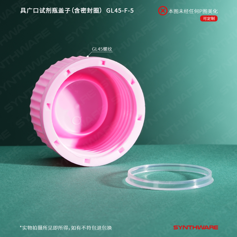 内扣盖款具广口试剂瓶盖子,PP材质,粉色螺纹盖 含密封圈,5个/包 GL45F-5