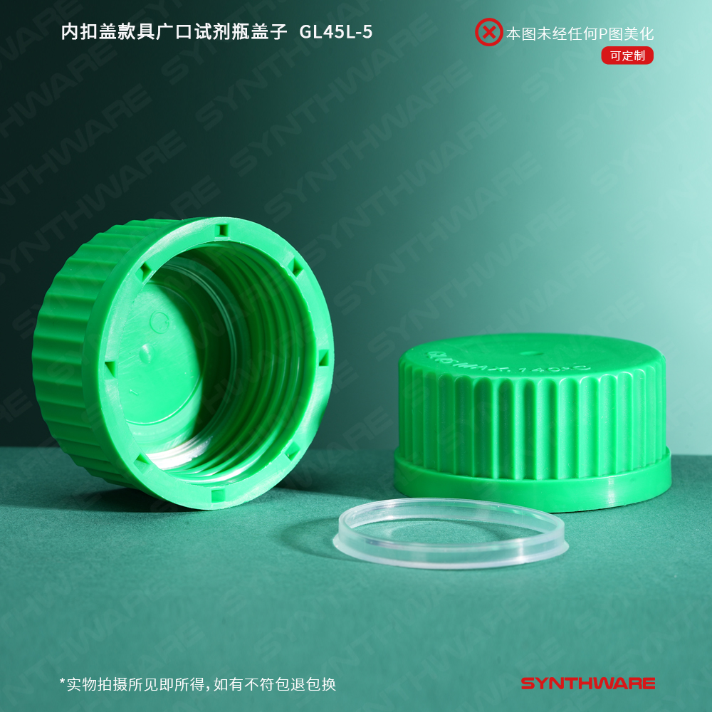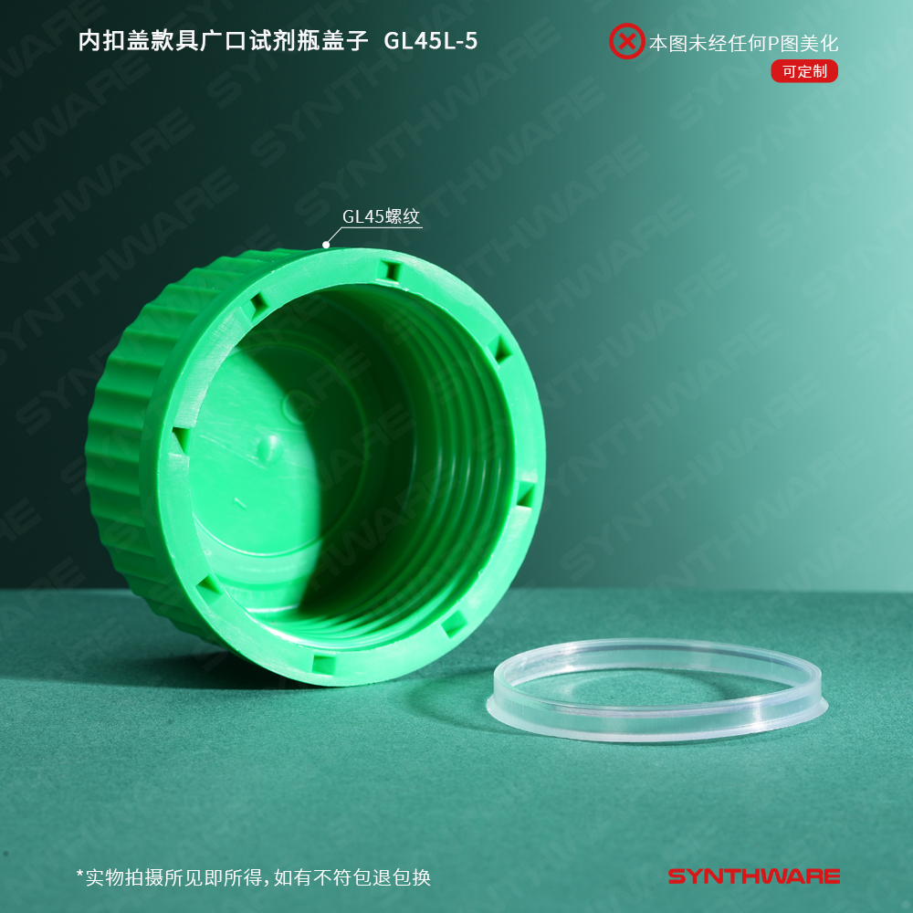 内扣盖款具广口试剂瓶盖子,PP材质,绿色螺纹盖 含密封圈,5个/包 GL45L-5