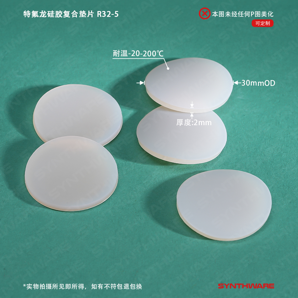 特氟龙硅胶复合垫片,直径30mm,厚度2mm,耐温-20-200℃,5个/包 R32-5