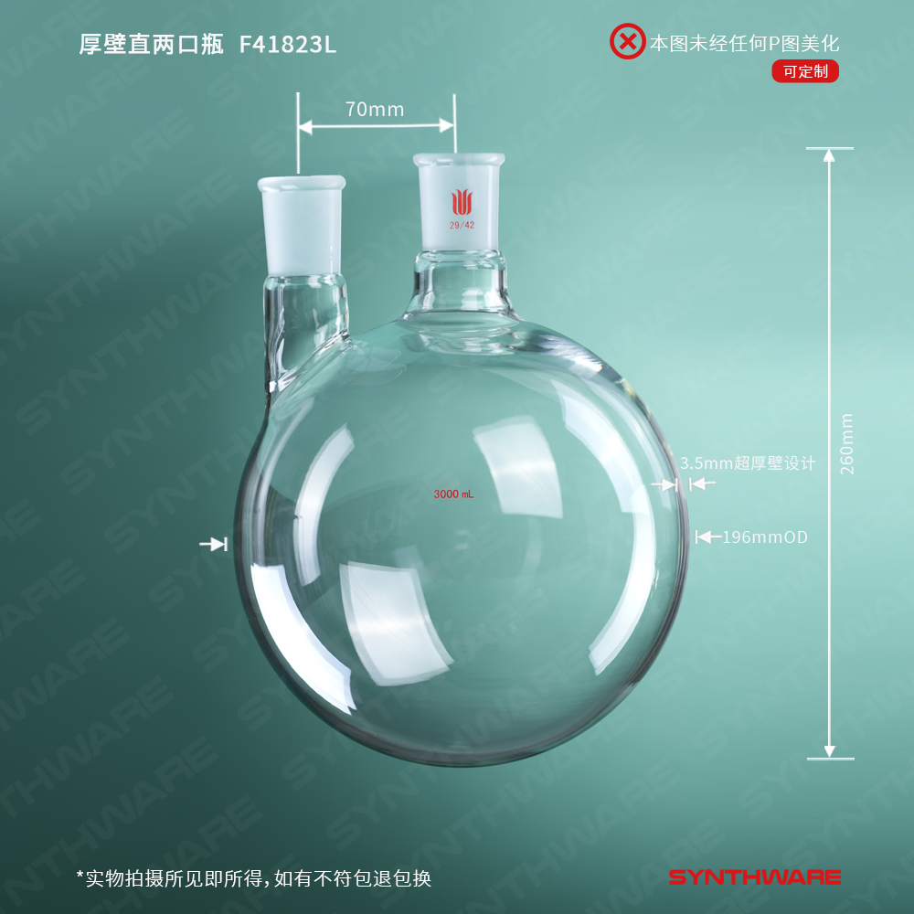 小角度斜两口瓶,厚壁高强度,中间磨口:29/42,侧磨口:24/40,3000ml F41813LX