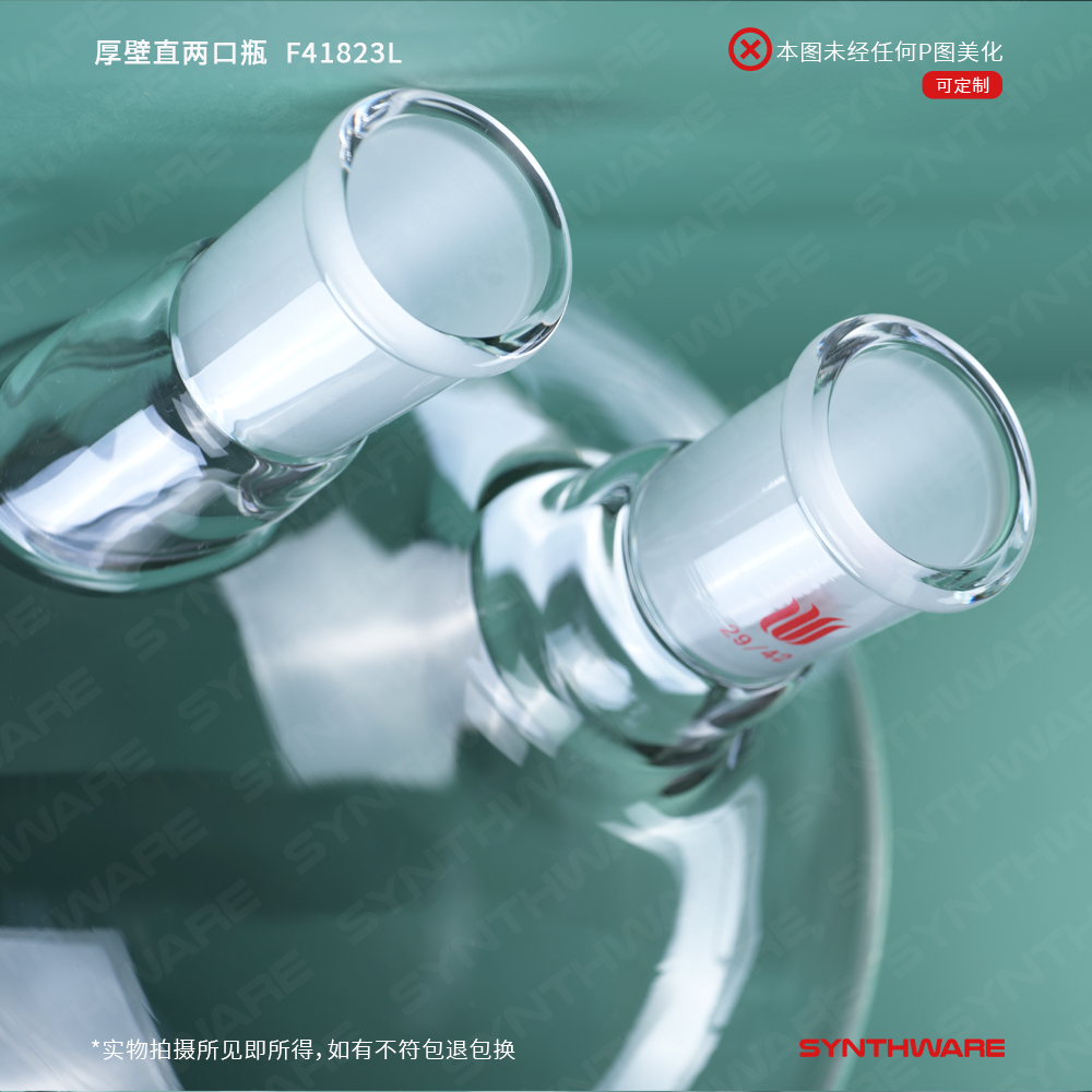 # 侧口可根据需求连接其他功能性接头或装置如:通气接头,冷凝器,加料漏斗等。不建议连接温度计或温度计套管类产品,如果需要连接温度计类产品请选购F41X小角度两口瓶系列。