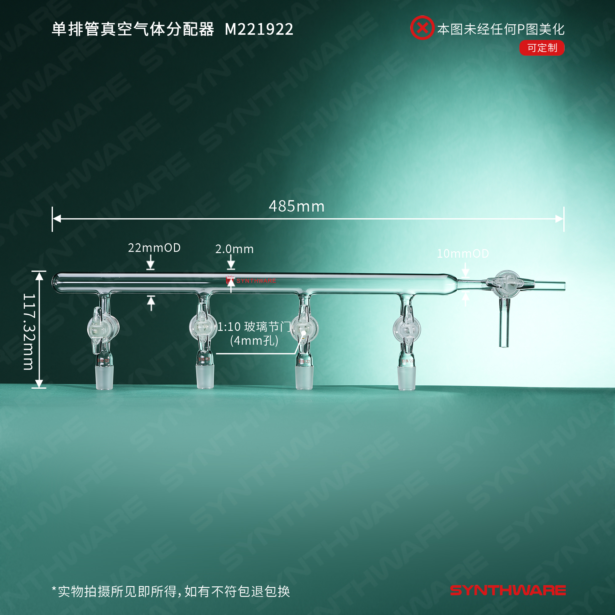 单排管真空气体分配器,实心玻璃节门,19/22,右T型节门 M221922
